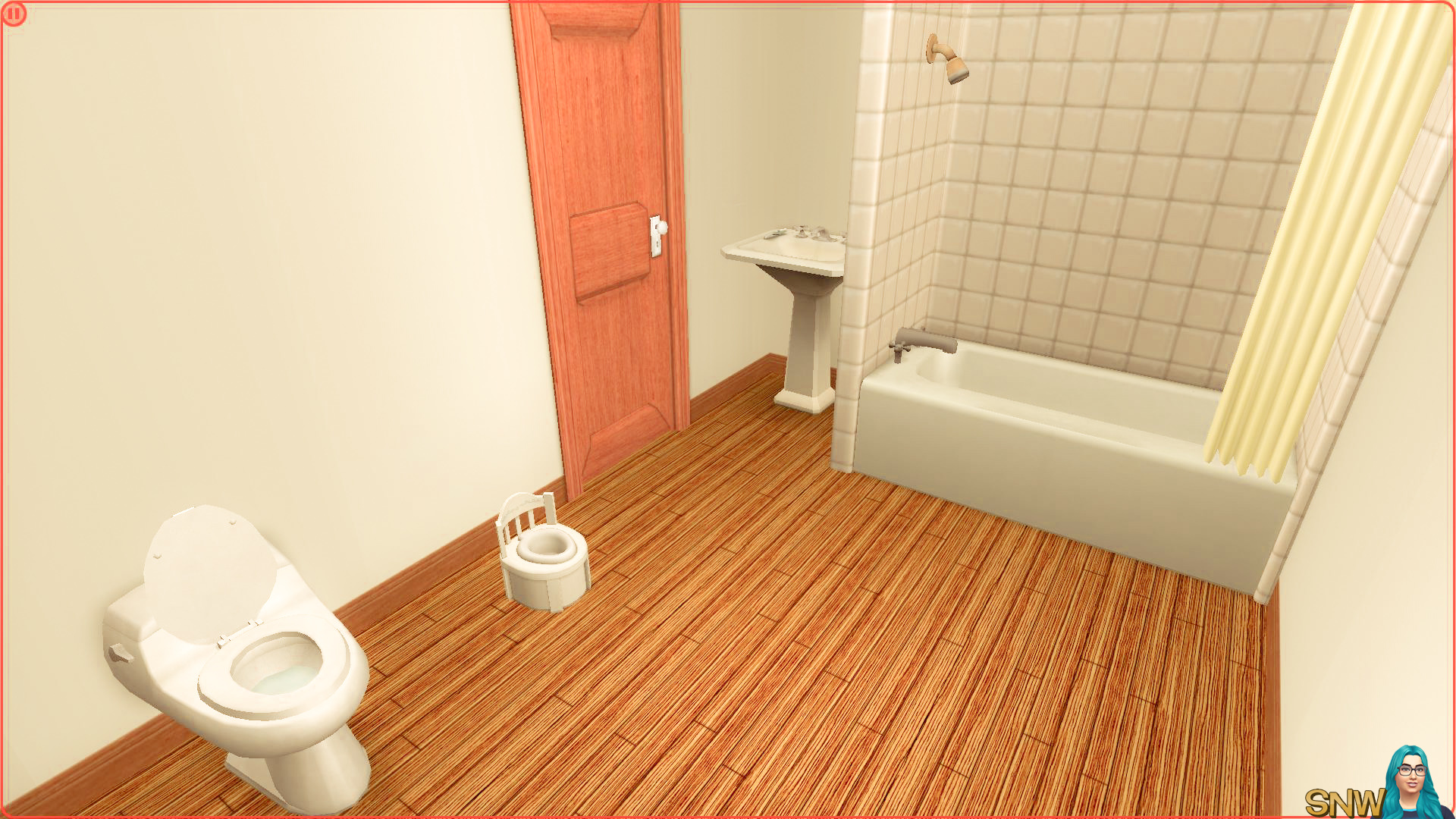 Upstairs there is another big entertainment room with pool table and violin. But you can easily make this into a huge bedroom. There is a master bedroom, a kids (or teen) bedroom and a nursery. Another bathroom, complete with toilet, sink, mirror, shower/tub combination and a little potty for the toddlers. The hallway has some hobby items like the sewing machine, pottery table and chess table. And the last and final room has fitness equipment!