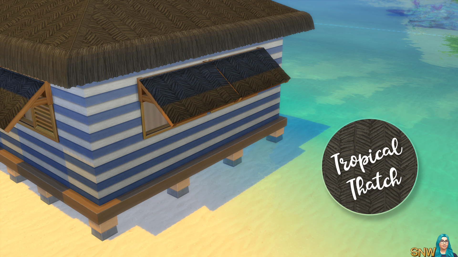 The Sims 4: Island Living is pretty amazing. As a builder I really love all the new build and buy items. But there are a few things I thought were missing. There is a matching awning for the Shingle Thatch roof. But there was none for the Tropical Thatch roof. I fixed that. Now you can have a matching awning to go with both tropical roof styles. Yay!