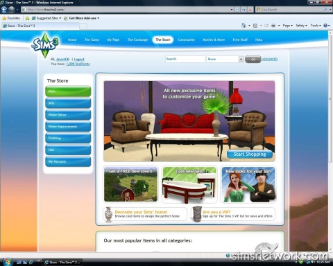 A major component of The Sims 3 Web site is The Store. Now if you've been keeping up with gaming the past few years, then you know that one of the emerging trends are microtransactions. It's the idea that you can buy optional items for, say, an online role-playing game for a small fee. These usually include stuff like a cool costume or a unique item, so it seems like a natural for The Sims. The Sims 3 will introduce an online store and SimPoints, the currency that the store uses. To get you started, EA will give you 1,000 SimPoints in your account. You can purchase more SimPoints in 500-, 1,000-, and 2,000-point packages; 1,000 SimPoints costs $10, so basically think of it as 100 points as costing $1.