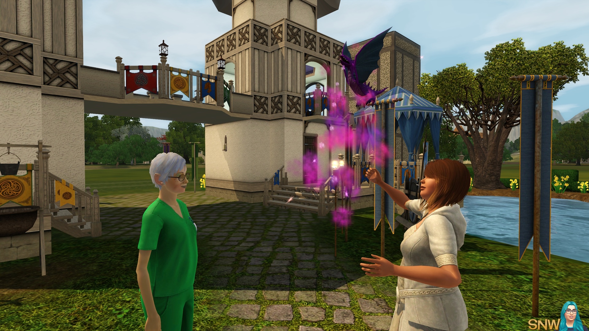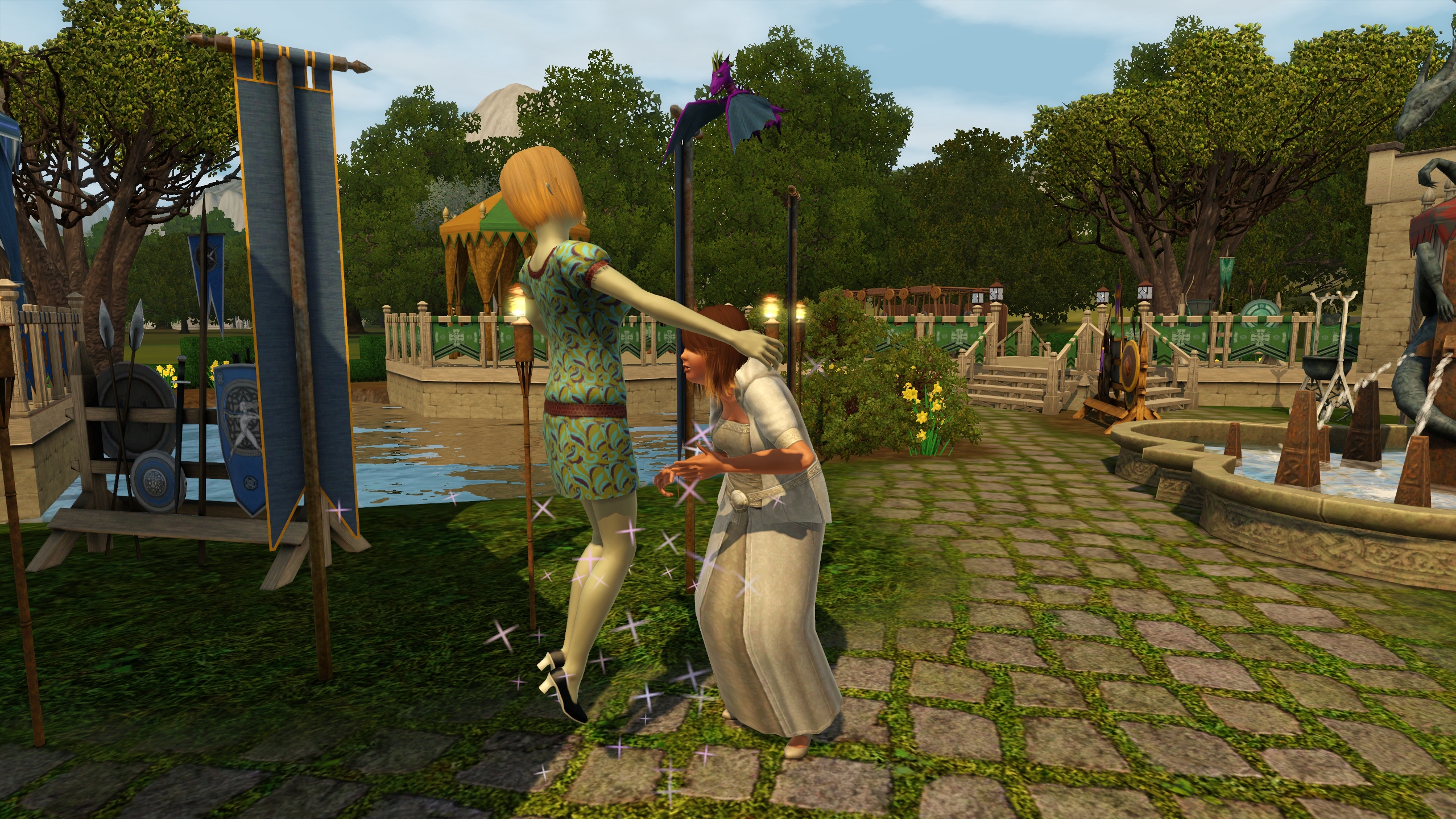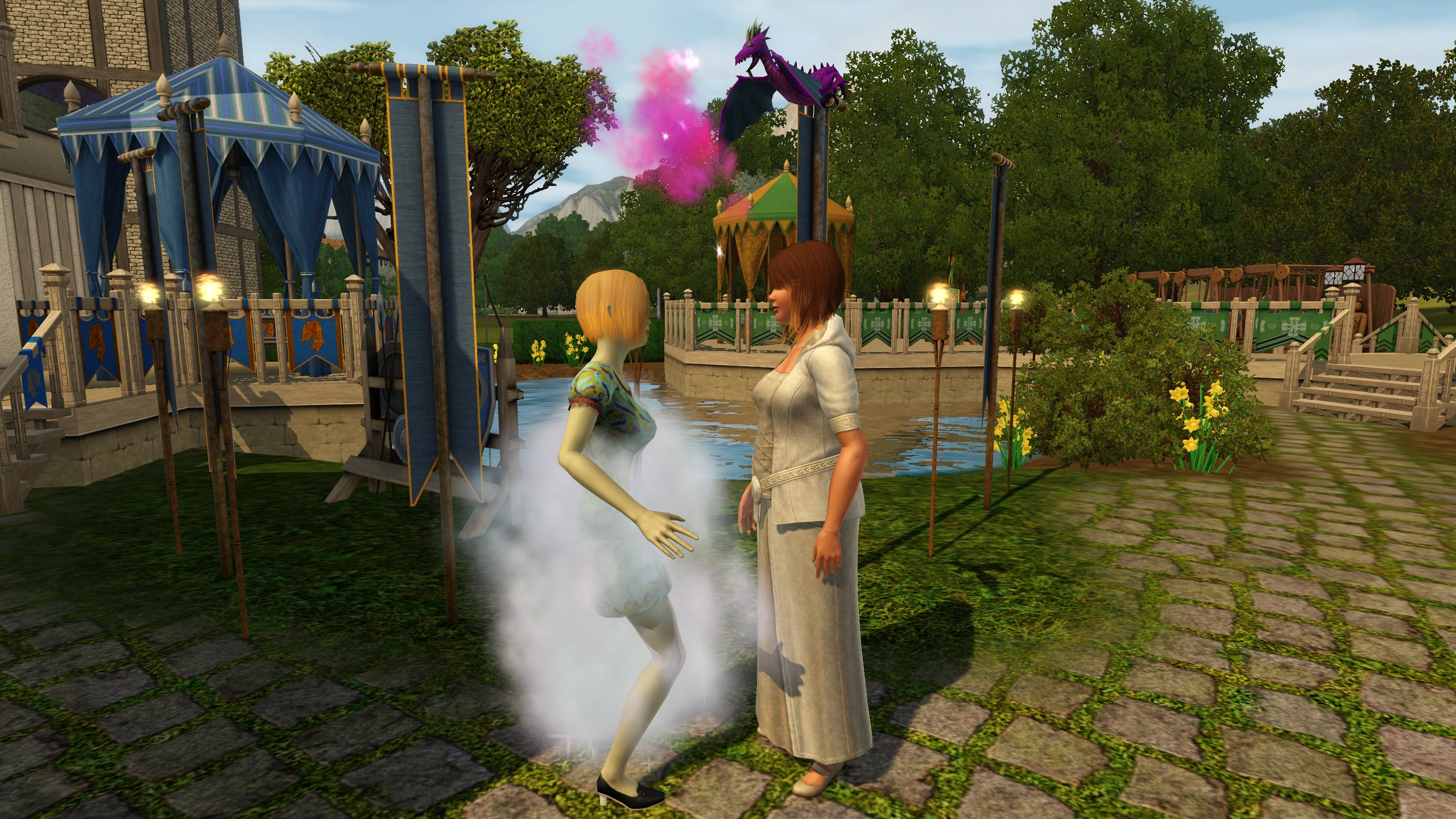 As you can see you can try your best to make ye olde world. But the cars, ice cream van and mobile phones sure gave me a good laugh. Of course, Dragon Valley is not necessarily a medieval world. But it appears as one to me. For storytellers the world is awesome, and the modern technology can "ruin" screenshots a little. But I managed to make most of my screenshots without cars "ruining" it. Of course you can live this world in a modern day as well. It's The Sims, use your imagination!