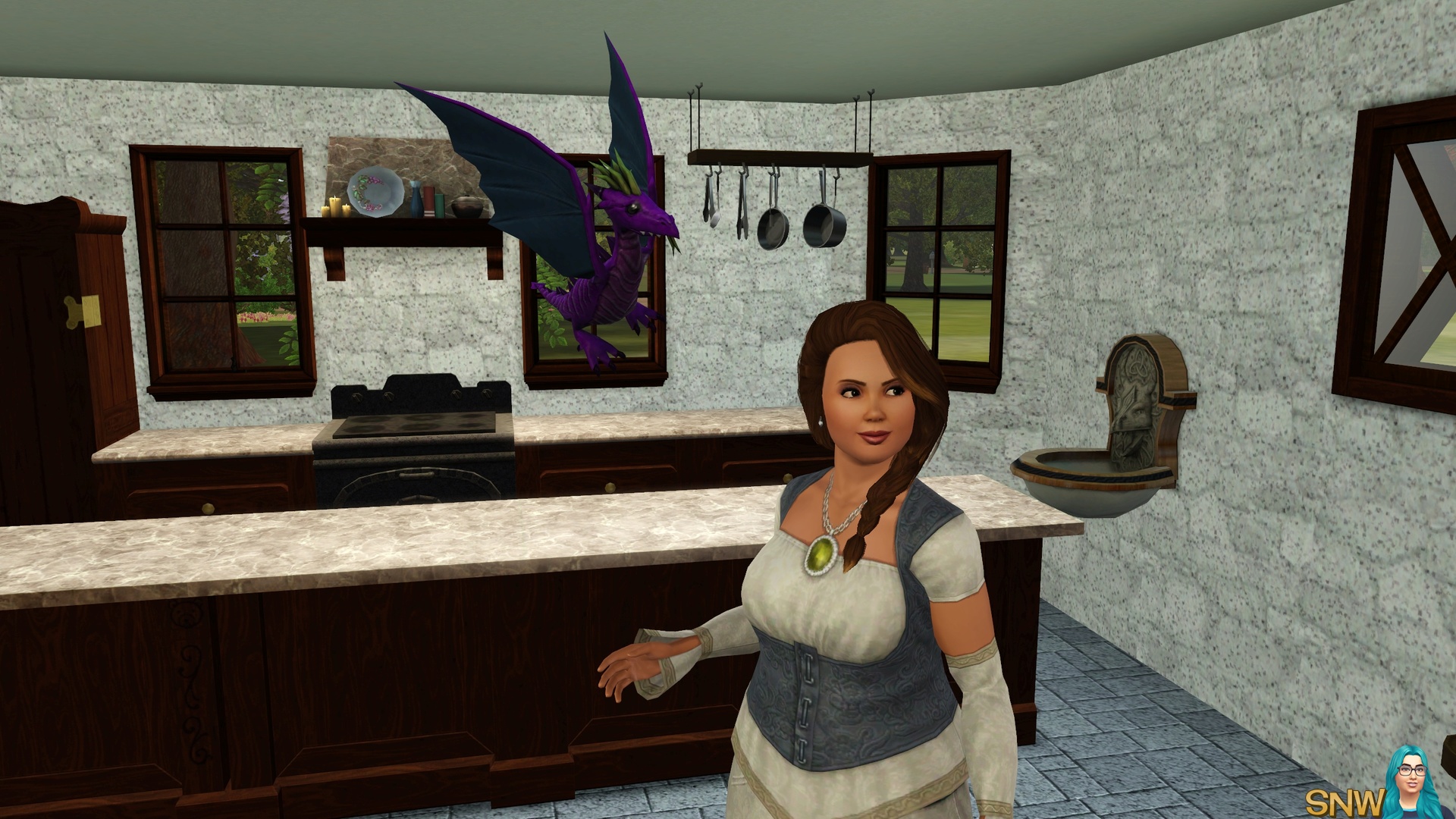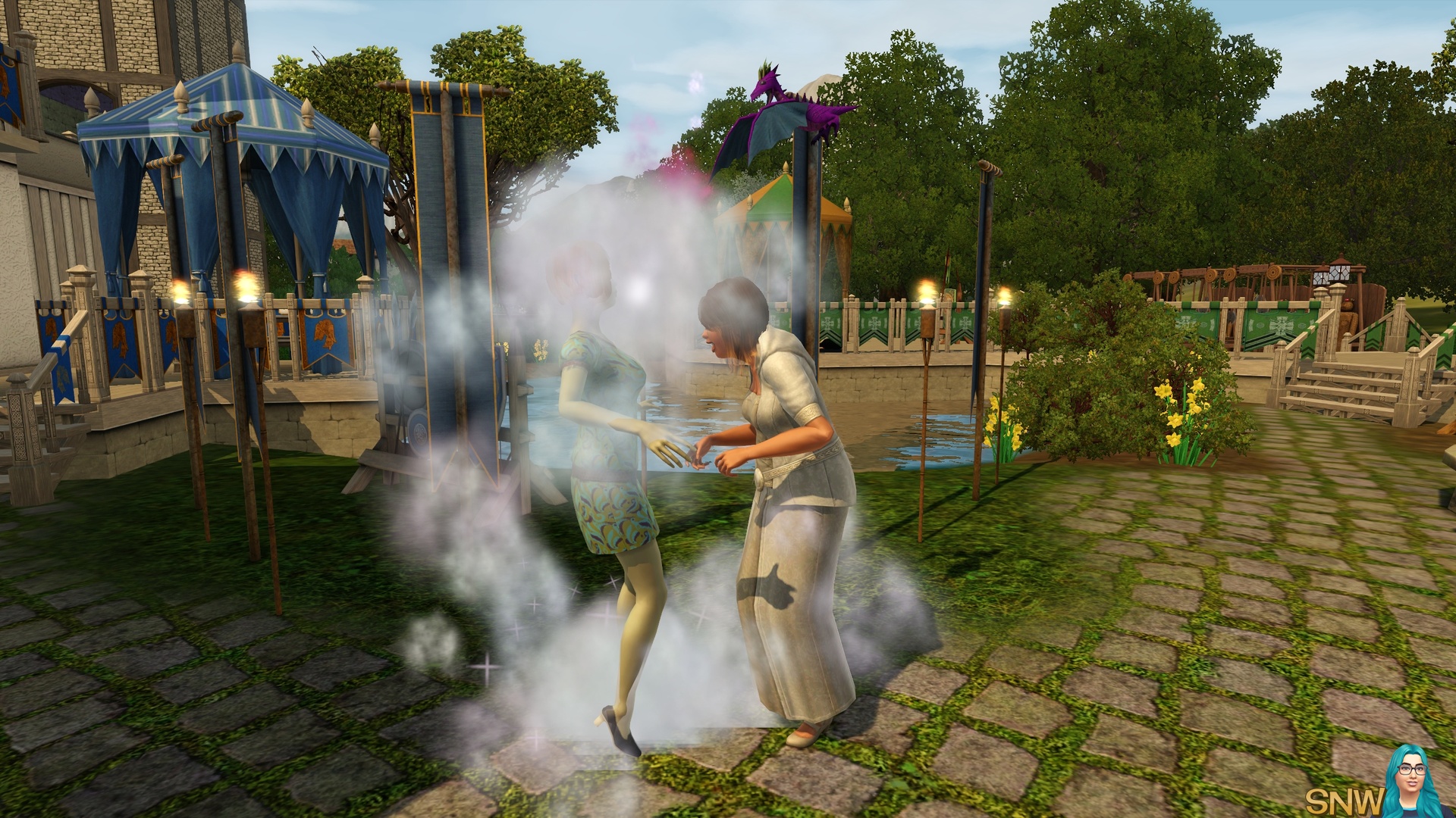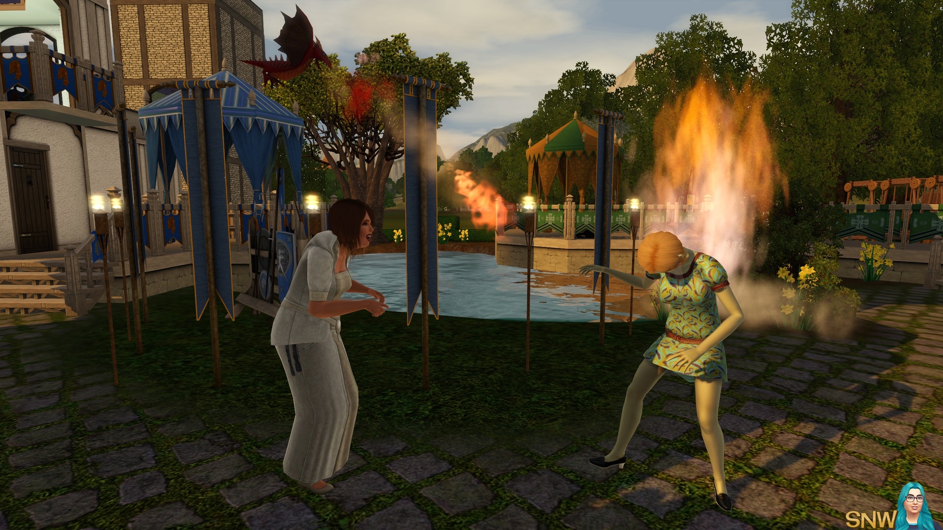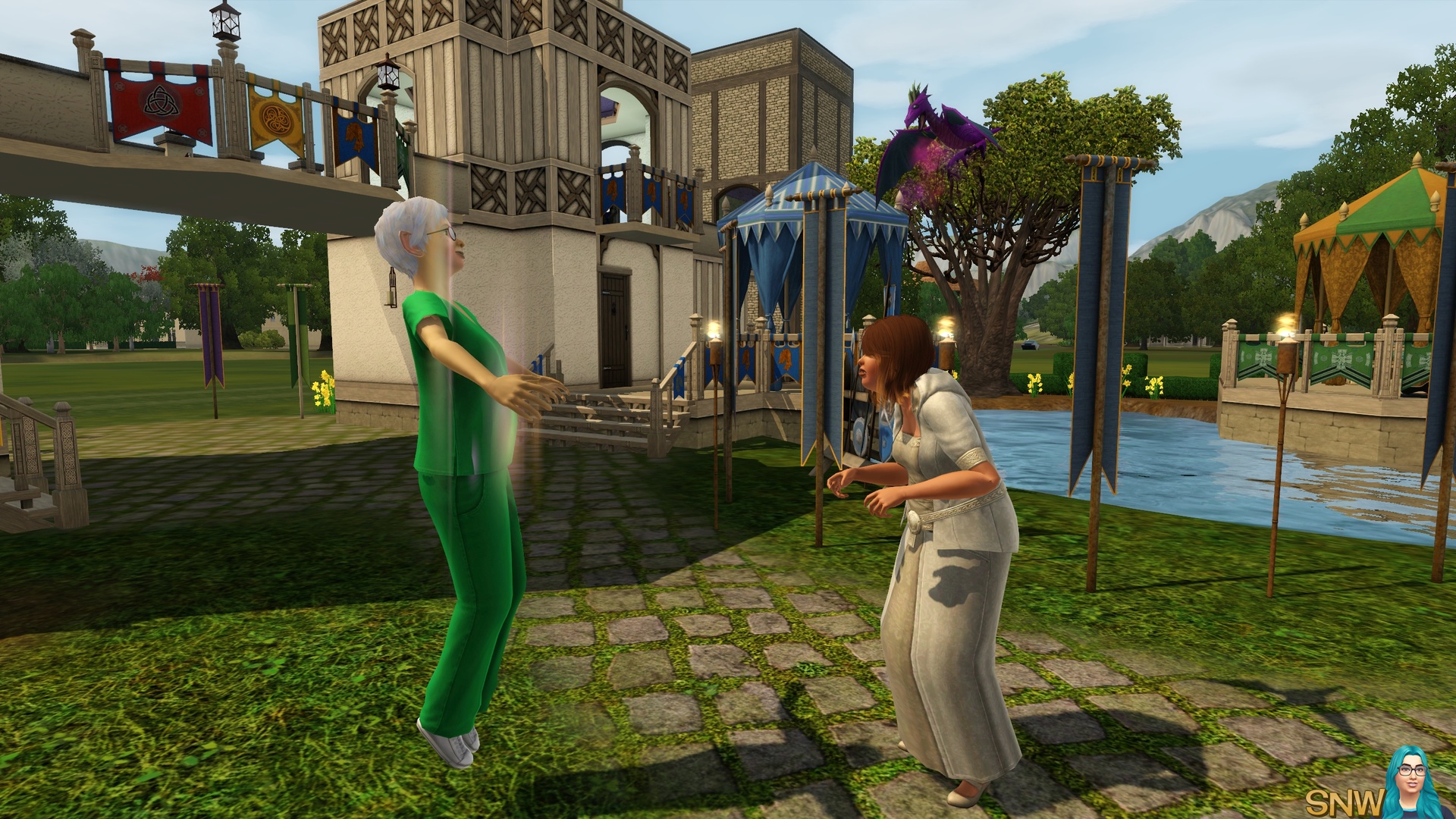 As you can see you can try your best to make ye olde world. But the cars, ice cream van and mobile phones sure gave me a good laugh. Of course, Dragon Valley is not necessarily a medieval world. But it appears as one to me. For storytellers the world is awesome, and the modern technology can "ruin" screenshots a little. But I managed to make most of my screenshots without cars "ruining" it. Of course you can live this world in a modern day as well. It's The Sims, use your imagination!