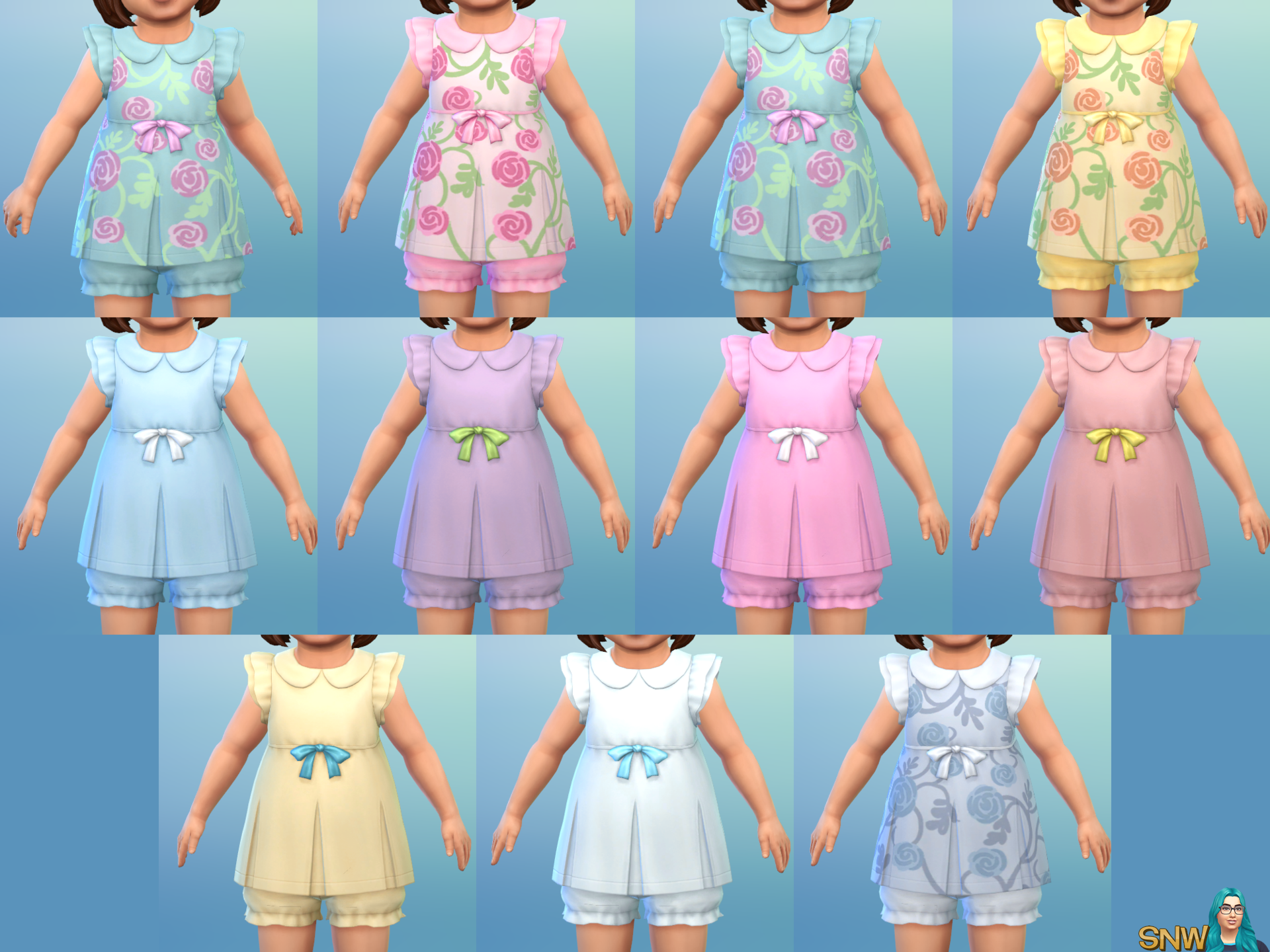 The above outfit has 11 colour options. As usual, the majority of these outfits are plain. But a few of them have a floral pattern as well.