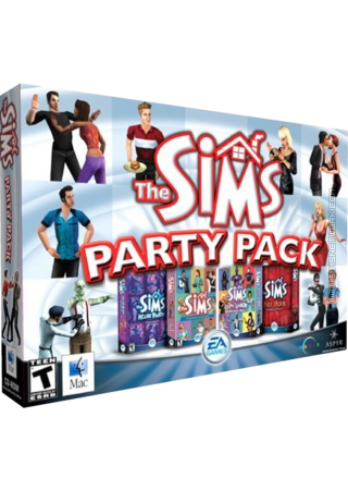 As always, some titles of compilations clash when it comes to Sims games. There is also another The Sims: Party Pack. That one is for PC and contains the base game The Sims and expansion pack The Sims: House Party, and was only released in Europe. This page is about The Sims: Party Pack for Mac. And it is similar to The Sims: Mega Deluxe when it comes to the box art and the content. The Sims: Mega Deluxe however was US only and The Sims: Party Pack was released in both US and Europe.